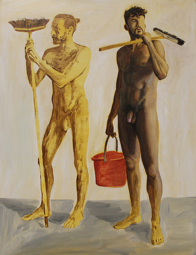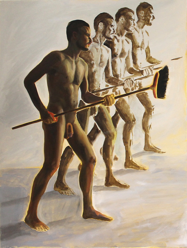 “Don Chisciotte riceve il titolo“, olio su tela, 89×131 cm, 1982